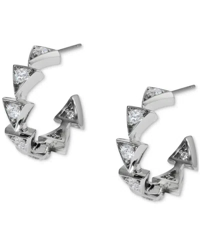 Silver-tone Small Cubic Zirconia Triangle C-hoop Earrings, 0.87", Exclusively At Macy's
