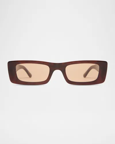 Flynn Glossy Acetate Rectangle Sunglasses In Brown