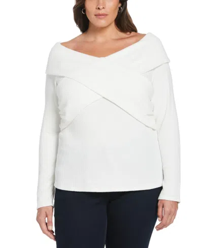 Plus Size Marilyn Ribbed Crossover Long Sleeve Top In White