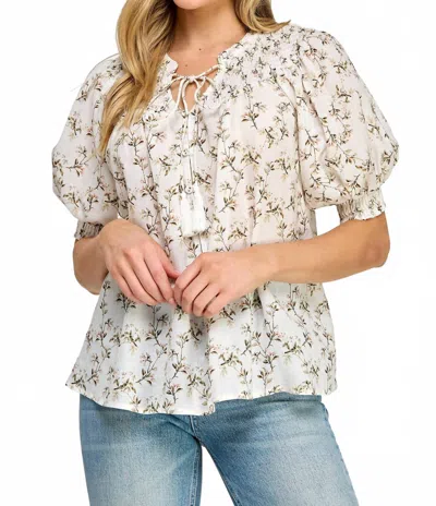 Flower Print Short Sleeve Peasant Blouse In Multi