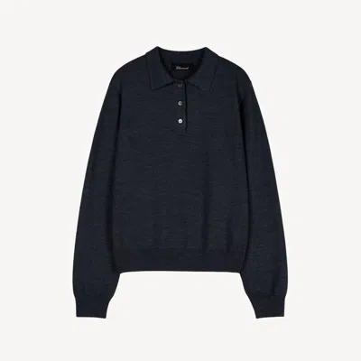 Women's Blue Classic Knit Polo Long Sleeve _ Navy