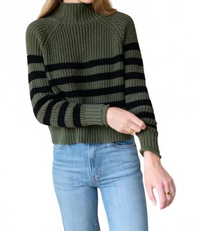 Boxy Funnel Neck Sweater In Army/black Stripe In Multi