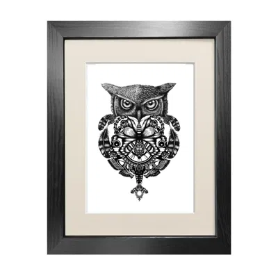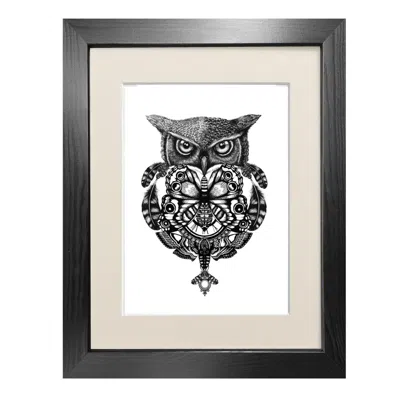 The Owl & Pocket Watch Fine Art Print A3 In Black