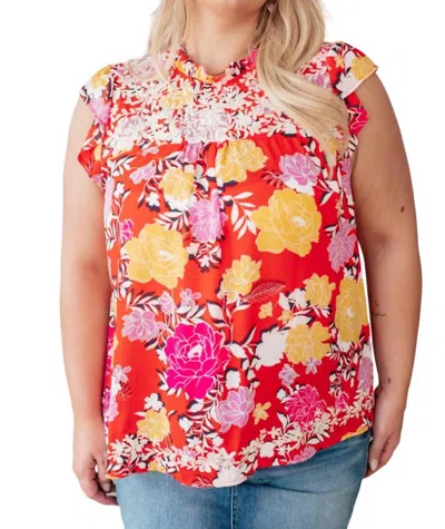 Among The Flowers Floral Top In Red