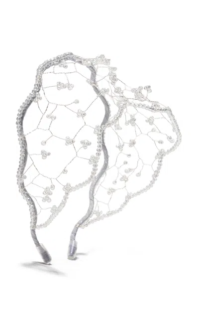 Crystal-beaded Lace Headband In Light Grey