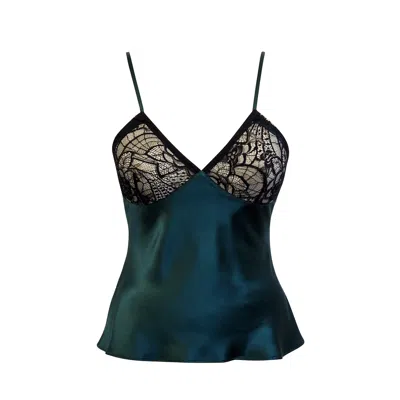 Women's Green / Black Annabelle Beautiful Silk Camisole With Luxury Lace In Multi