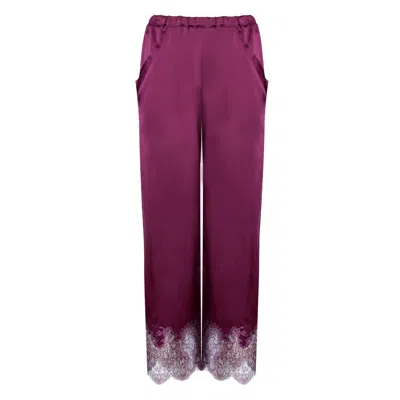 Women's Rochelle Luxury Pyjama Trouser In Winter Berry Silk With Lace In Purple