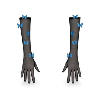 Women's Black Morphology Long Mesh Gloves With Butterfly Detail