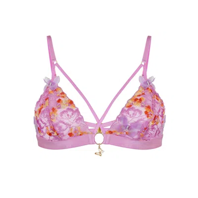 Women's Pink / Purple Madame X Lilac Lace Strappy Bralette With Butterfly Detail In Pink/purple