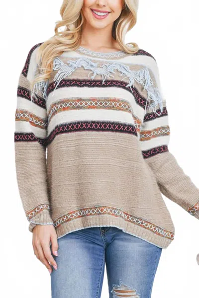 Fringe & Stitch Detail Sweater In Beige In Neutral