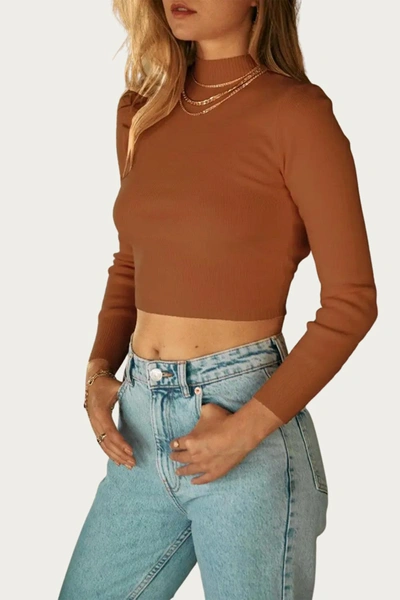 Cropped Open-back Mock Neck Sweater In Amber Brown