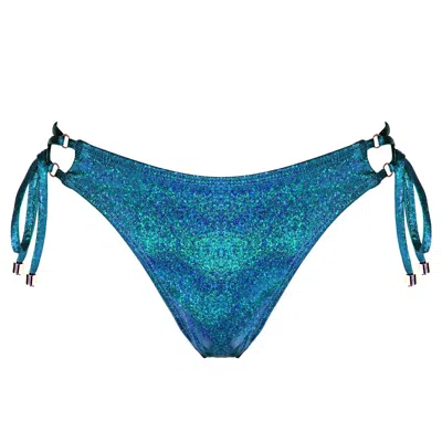 Women's Green / Blue Eden Adjustable Scrunch Bikini Bottom - Glitter Aqua In Green/blue