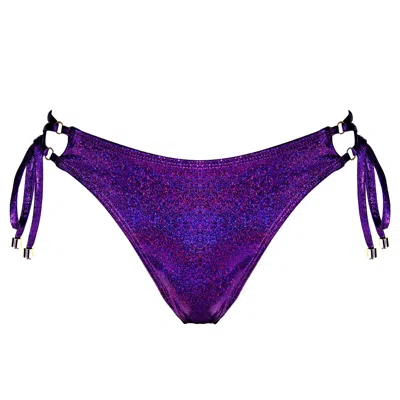 Women's Pink / Purple Mira Thong Bikini Bottoms - Grape Glitter In Pink/purple