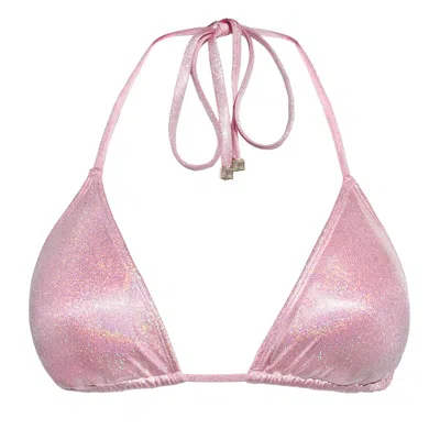 Women's Pink / Purple Eden Triangle Bikini Top - Candy Pink Glitter In Pink/purple