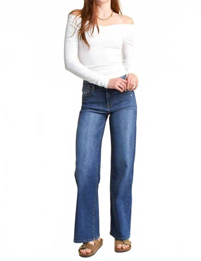 High Rise Wide Leg Jeans In Dark Wash In Blue
