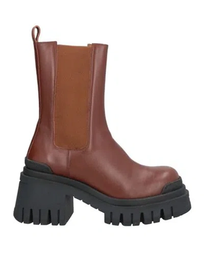 Woman Ankle Boots Cocoa Size 7 Calfskin In Brown