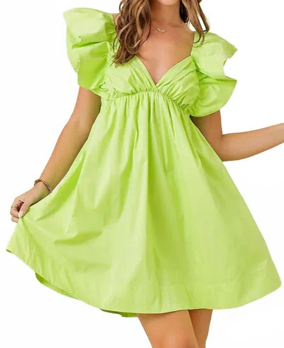 Flutter Sleeve Mini Dress In Lime In Green