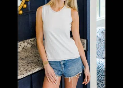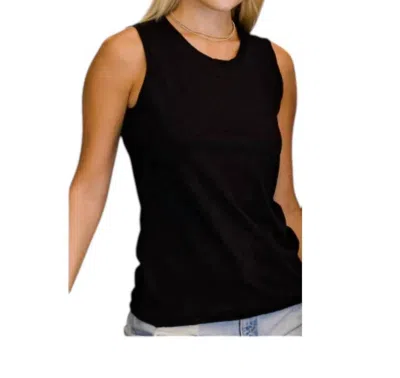 Luxe Elevated Ribbed High Neck Tank Top In Navy In Blue