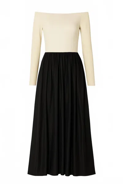 Women's Off-shoulder Knit Cotton Dress In Crema Black