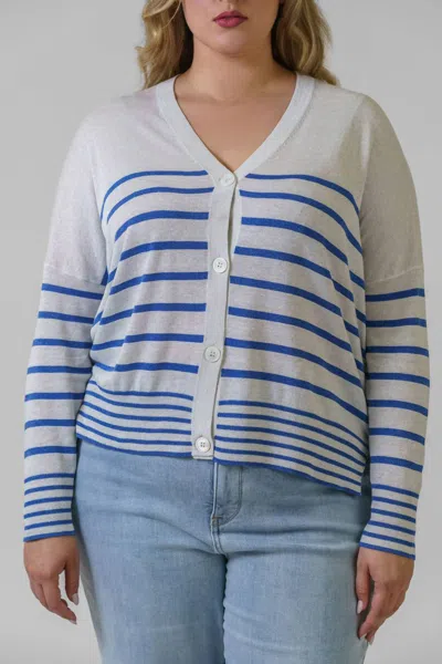 Navy Stripe Cardigan - Plus In Blue And White Stripe
