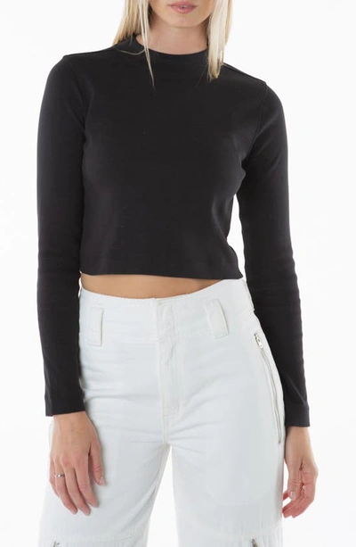 Belle Crop Mock Neck Rib Pullover In Black Beauty