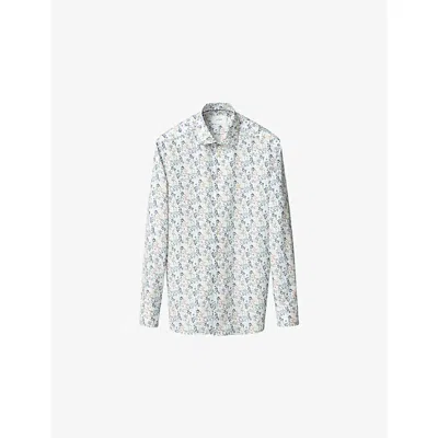 Mens Mid Blue Floral-print Contemporary-fit Cotton-twill Shirt