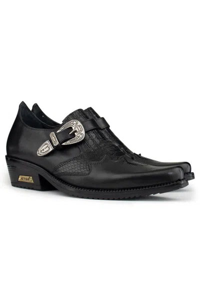 Pre-owned Men's Leather Western Shoes Black Cuban Cowboy Winklepickers Classic Buckle Shoe