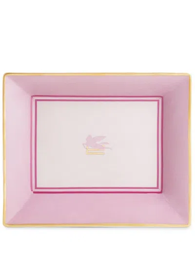 Pegaso-motif Porcelain Tray In Pink