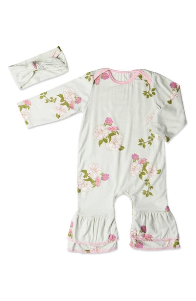 Baby Grey By Ruffle Romper & Head Wrap Set In Peony