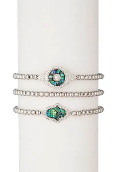 The Luxe Collection Pearl Cz Peacock Stretch Bracelets In Blue