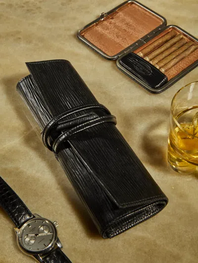 Leather Cigar Case (3 Cigars) Abask Luxury Gift In Black