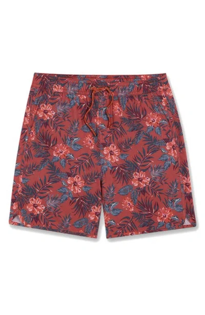 Kids' Little Boy's & Boy's Bayberry Recycled Swim Shorts In Red Waves
