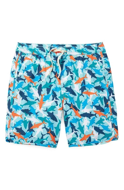 Kids' Anchor Shark Print Water Repellent Swim Trunks In Reef Sharks