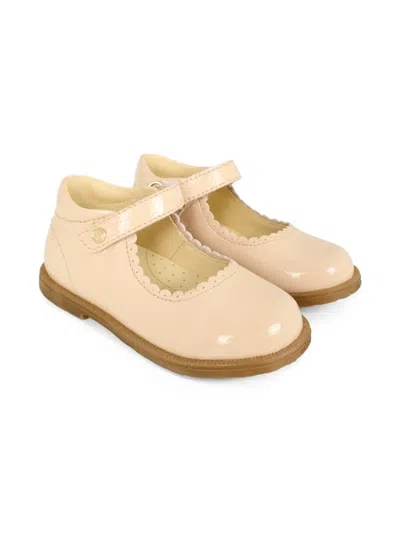 Kids' Calf-leather Scalloped-edge Ballerinas In Pink