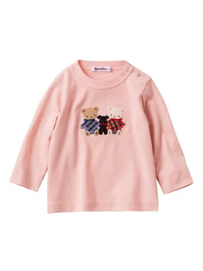 Kids' Bear-appliqué Cotton T-shirt In Pink
