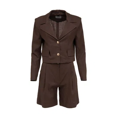 Women's Brown Cocoa Linen Cropped Blazer