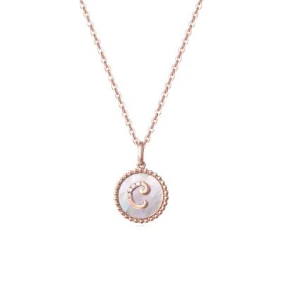 Women's "i" Initial Letter Mother Of Pearl And Diamond Round Disc Solid Rose Gold Necklace - Rose Go