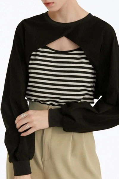 Laverne Convertible Cropped Cutout Tank Bolero Set In Black/white
