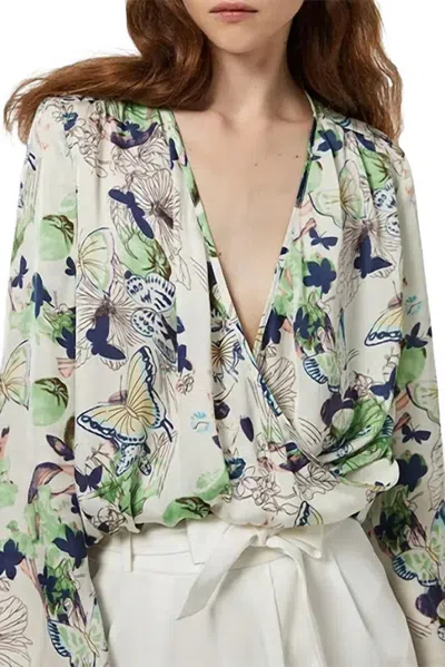 Ronnie Pinstripe Wrap Blouse In White/grey