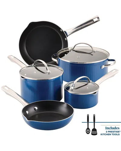 Style Aluminum Nonstick 10 Piece Cookware Pots And Pans Set In Blue