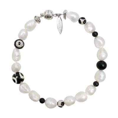 Men's Black / White Black And White Dzi Agate Bracelet In Multi