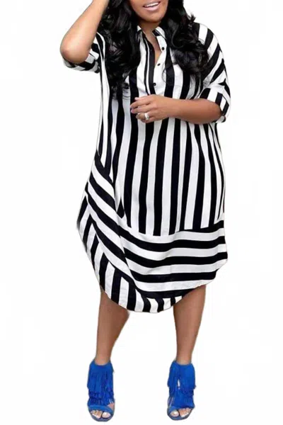 Zelda Striped Shirt Midi Dress In Black/ White