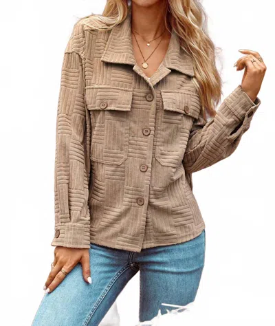 Textured Chest Pocket Button-up Shacket In Beige In Brown
