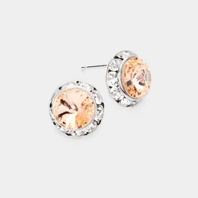 Rivoli Cut Genuine Crystal Round Stud Earrings - Peach In Orange
