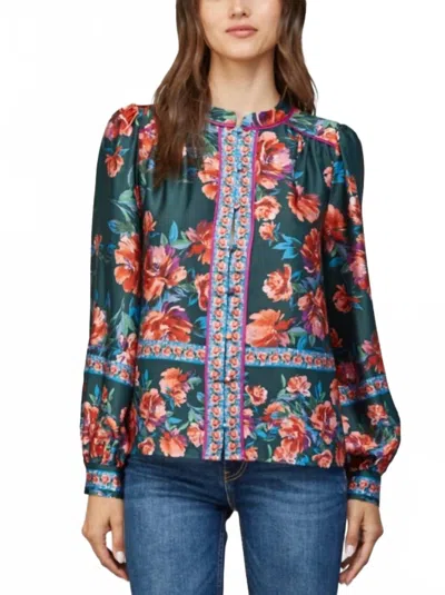 Long Sleeve Tie Neck Floral Print Top In Blue, Multi