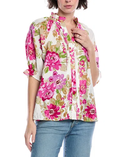 Esme Animal-print Lace Peasant Blouse In Ivory Multi