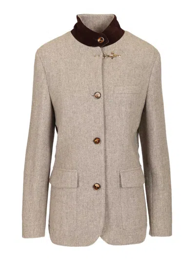 3 Hooks In Wool And Cashmere Blend Fabric In Beige