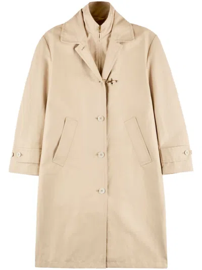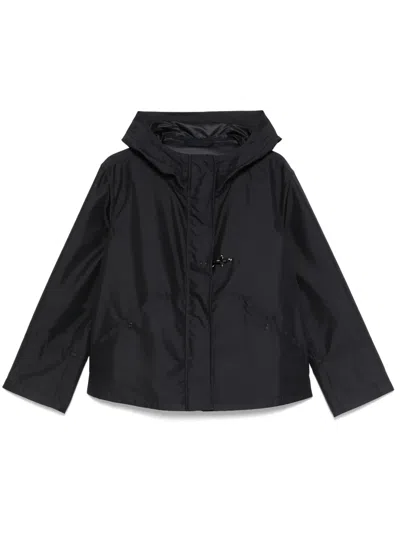 Tailored Cape With Stand-up Collar And Hidden Closure In Blue