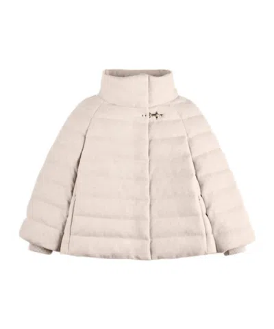 Quilted Nylon And Velvet Cape With Hook In White