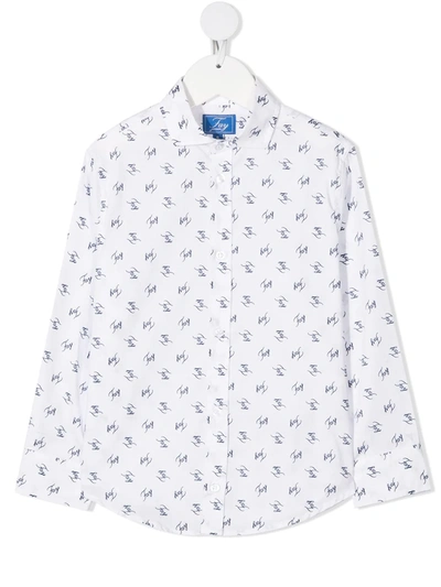 Kids' Long Sleeve Embroidered Logo Shirt In White